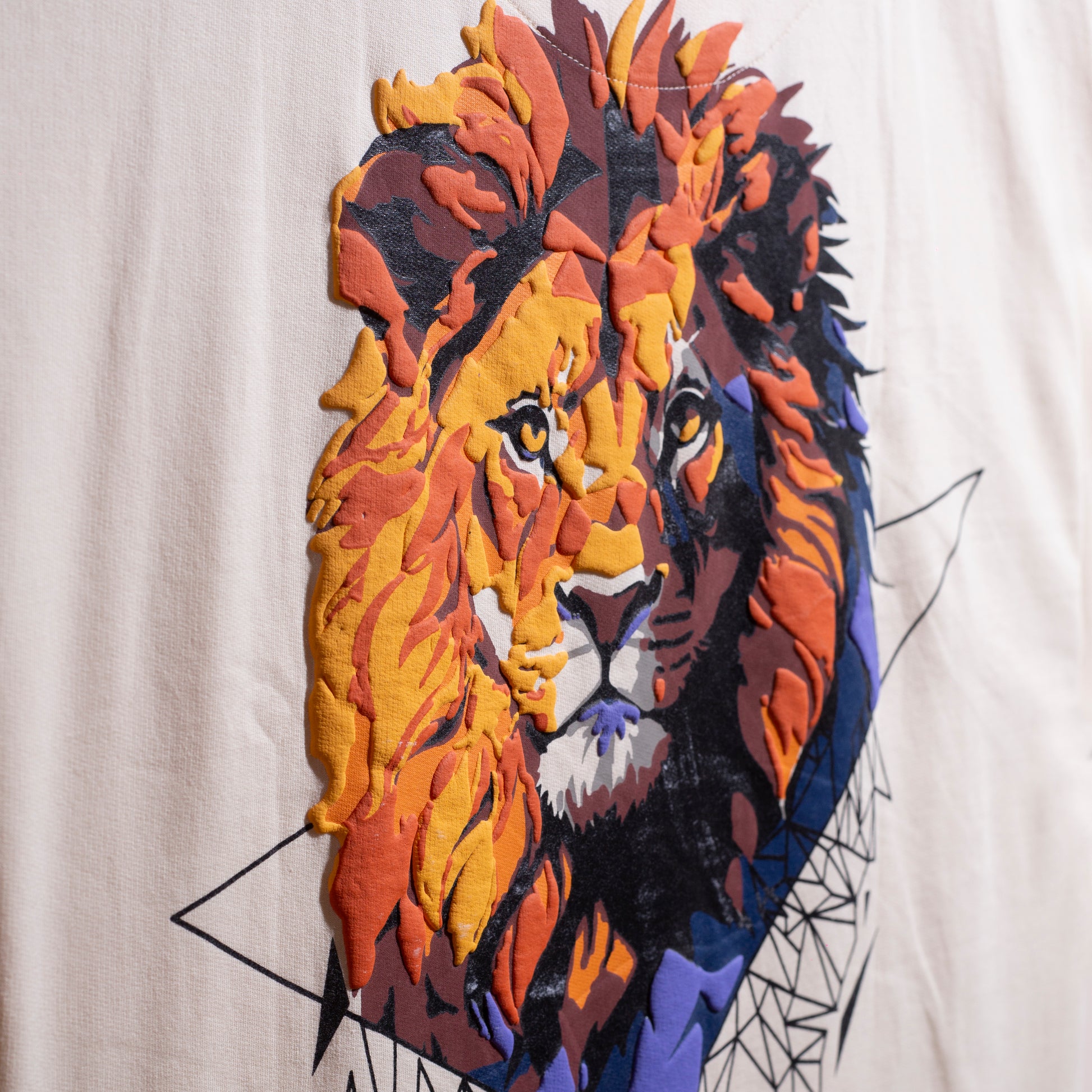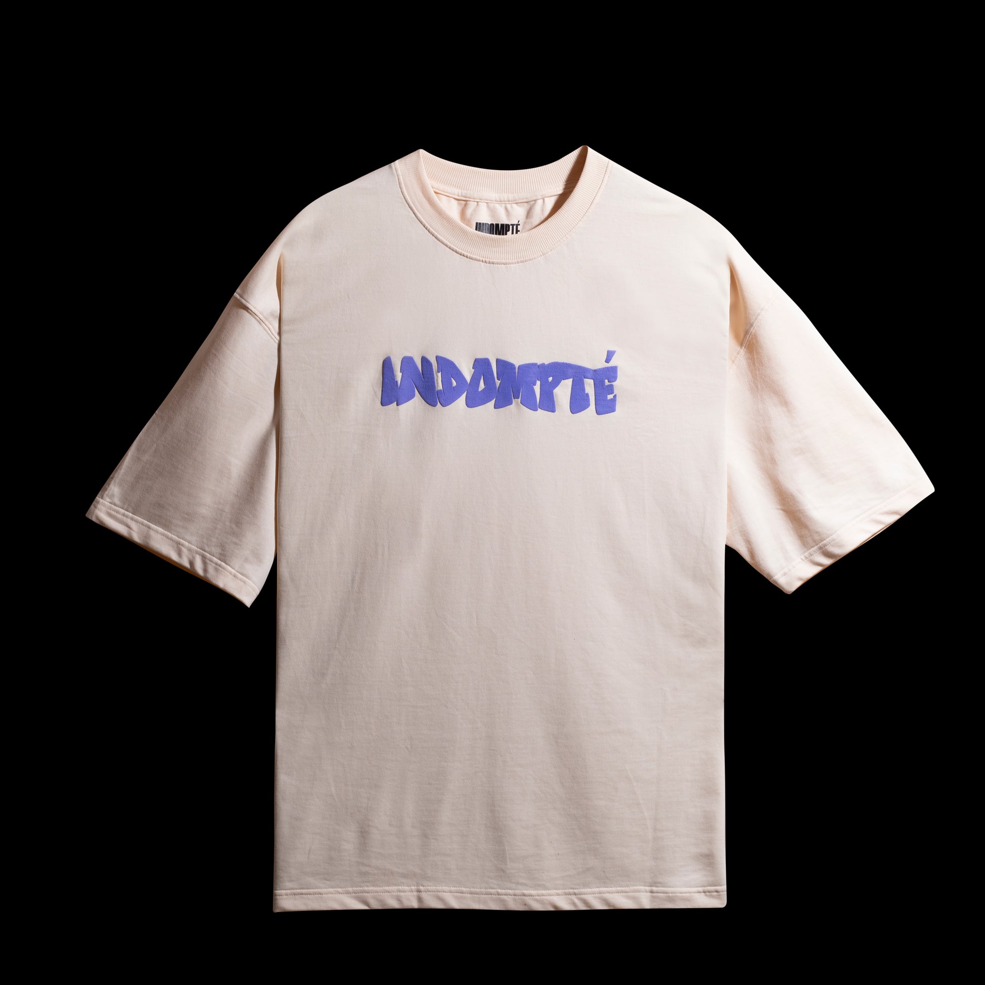 ON THE FRONT, YOU’LL FIND “INDOMPTÉ” PRINTED IN A STRIKING PURPLE PUFF PRINT, GIVING IT A TEXTURED, EYE-CATCHING LOOK. TURN IT AROUND, AND THE BACK SHOWCASES A STUNNING MULTICOLOURED LION GRAPHIC COMBINED WITH GEOMETRIC LINE ART—A SYMBOL OF POWER AND FEARLESSNESS THAT MAKES THIS PIECE A TRUE STATEMENT.