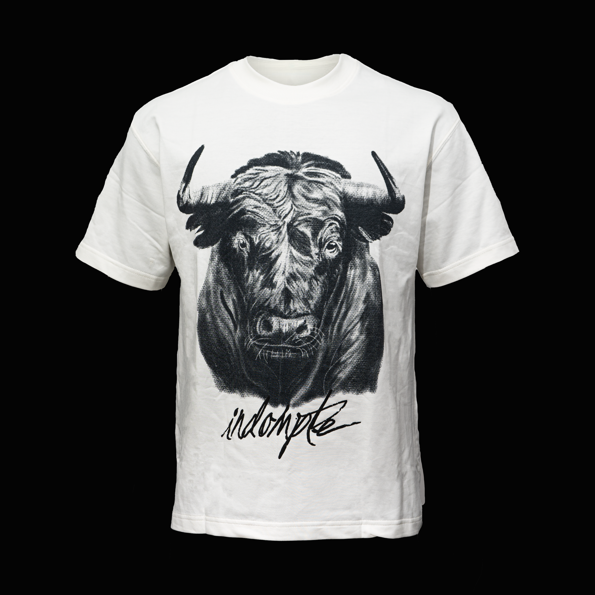 ON THE FRONT, YOU’LL SEE A STRIKING BLACK BULL GRAPHIC WITH THE WORD “INDOMPTÉ”. THE DETAILED PRINT ADDS DEPTH AND ATTITUDE, MAKING IT A STANDOUT PIECE IN ANY OUTFIT.